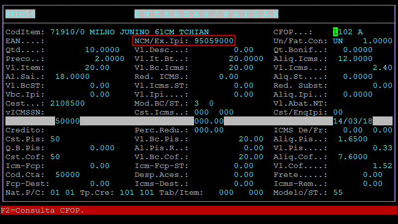 Na imagem a seguir é possível observar que foi carregado o NCM do cadastro de produto que foi atualizado de acordo com o NCM do XML por conta do campo Atu. NCM estar setado com S - Sim.
