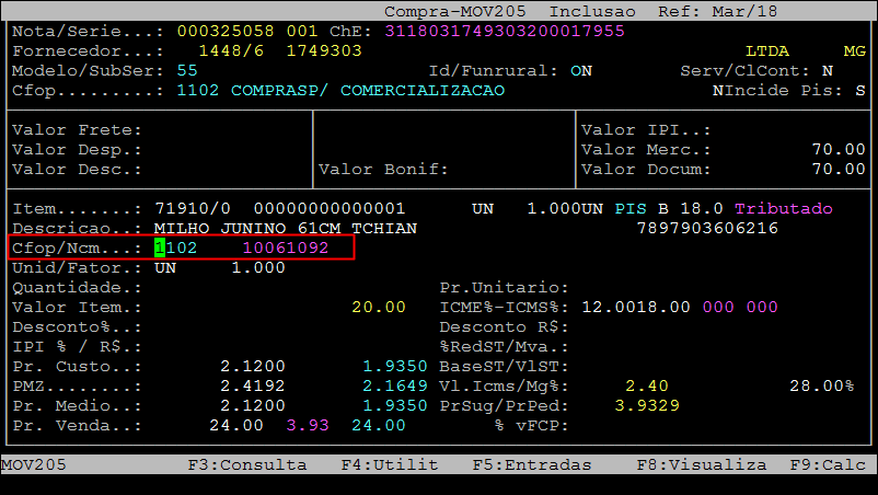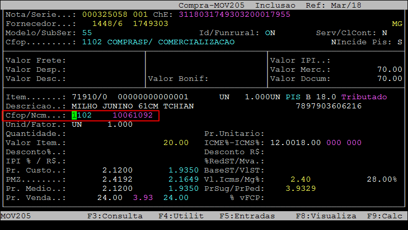 | Localização: | Administração de Materiais / Gestão de Estoque / Gerenciamento de Filial / Entradas e Saídas / Movimentação / Entrada / Compra / Mercadoria |