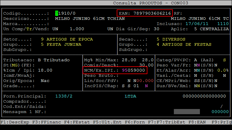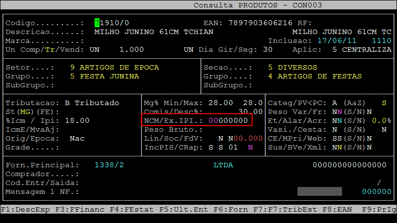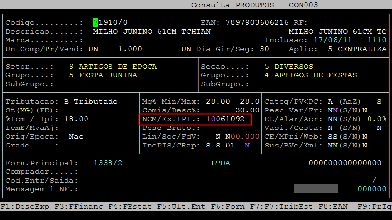 Na rotina de consulta de produtos é possível observar o NCM cadastrado.