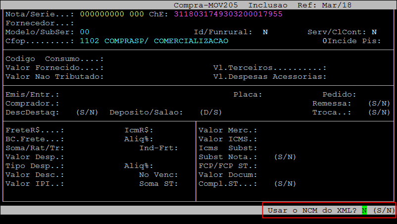 Ao pressionar Enter o sistema pergunta ao usuário se ele deseja usar o NCM do XML ou do cadastro de produto: