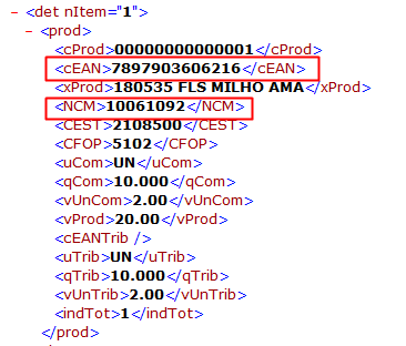 No arquivo XML é possível observar o NCM da nota enviada pelo fornecedor.