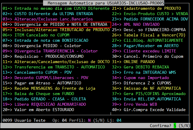 Como Cadastrar e Visualizar a Mensagem 04 - Divergência de Pedido e Nota de Entrada no Sistema Integral?