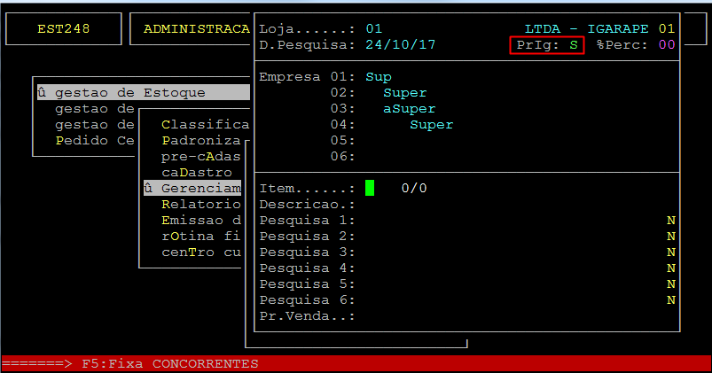 Acesse a localização indica acima e pressione ENTER até o campo "Pesq.Preco Atu.Pr.Ig".