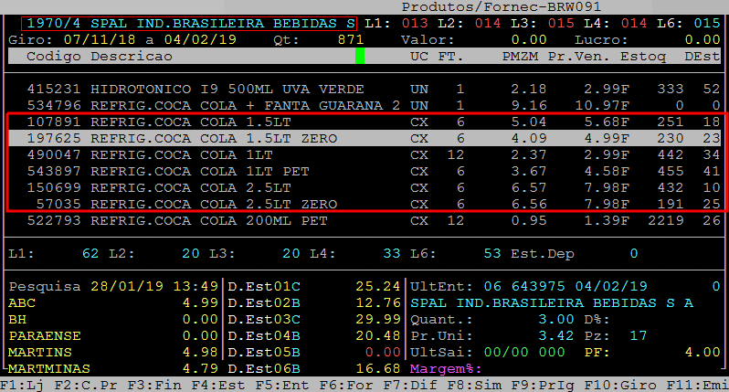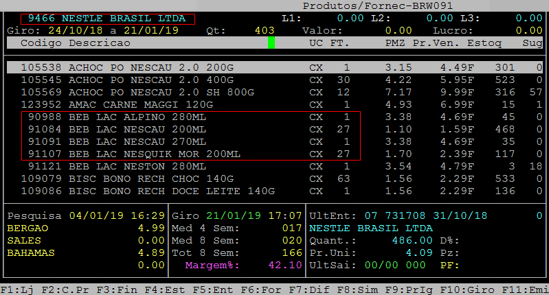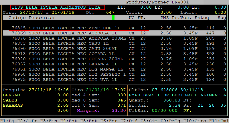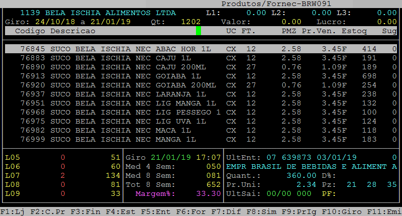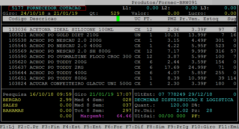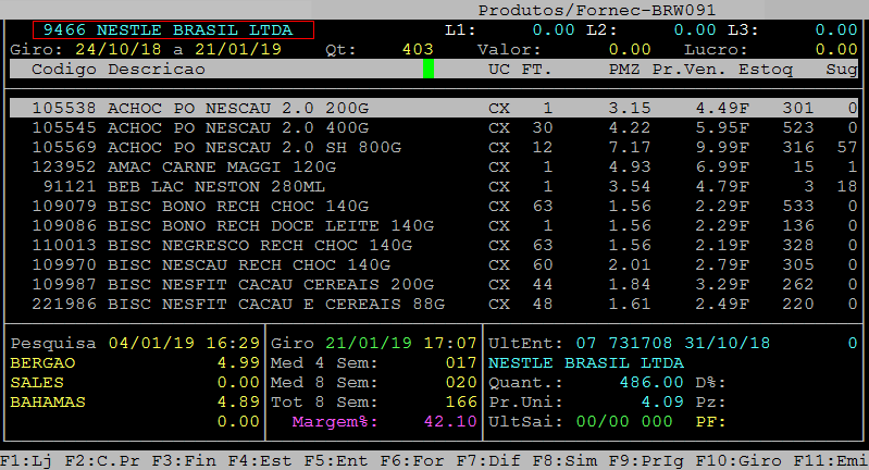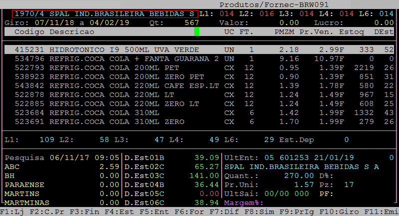 Após desvincular o fornecedor dos produtos é possível verificar os itens novamente no caminho F3 / fornecedores / consulta / F8.