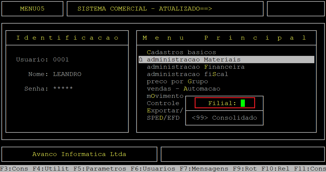 Caso possuir mais de uma loja configurada no cadastro de usuário, o sistema exibirá a janela de Filial, no qual deverá informar o número da loja que deseja emitir etiquetas.