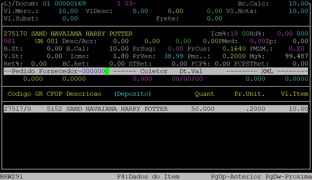 Ao ser exibido o número da nota fiscal, pressione a tecla S para sair da rotina.