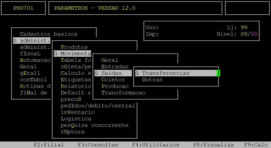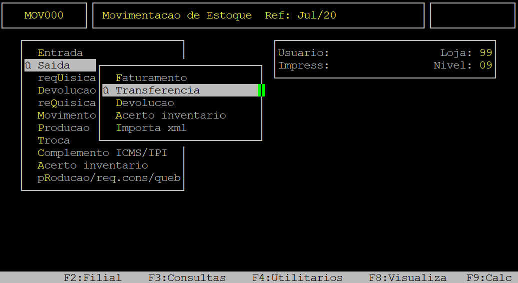 Localização: | (Menu Principal) F5 / Administ. Materiais / Movimentacao / Saidas / Transferencias |