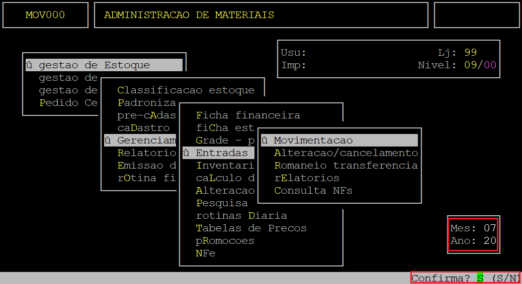 Ao ser exibida a pergunta " Confirma? ", pressione a tecla Enter ou informe a letra S para confirmar.
