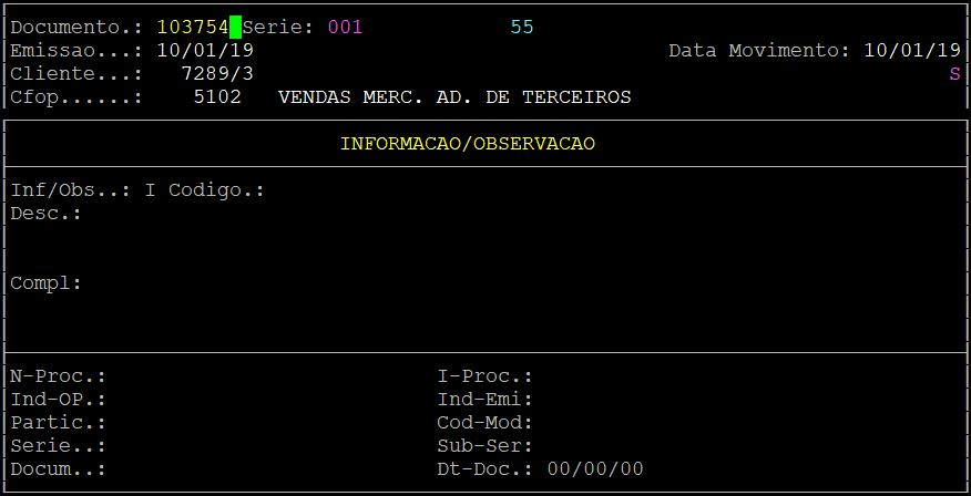 Exemplo de Emissão de Nota Fiscal - Número da NF