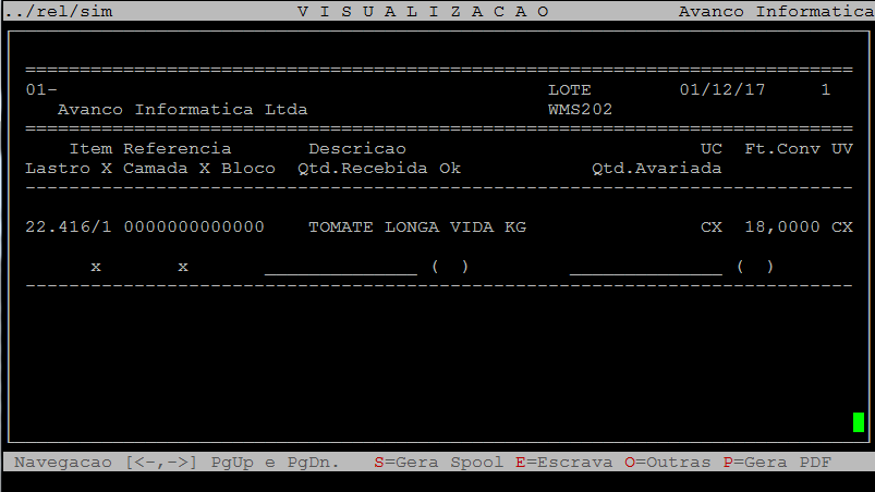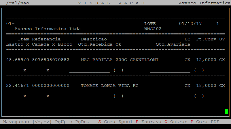 O relatório conferência cega permite ao usuário visualizar a quantidade por item e desta forma poder realizar a conferência.