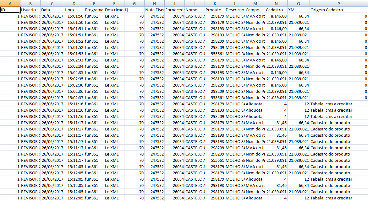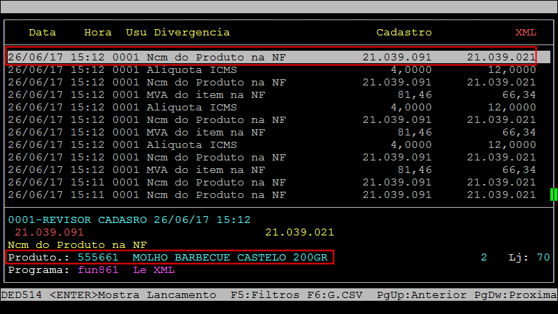 Localização: | F3 / Produtos / Notas Fiscais / Divergências MVA NCM |