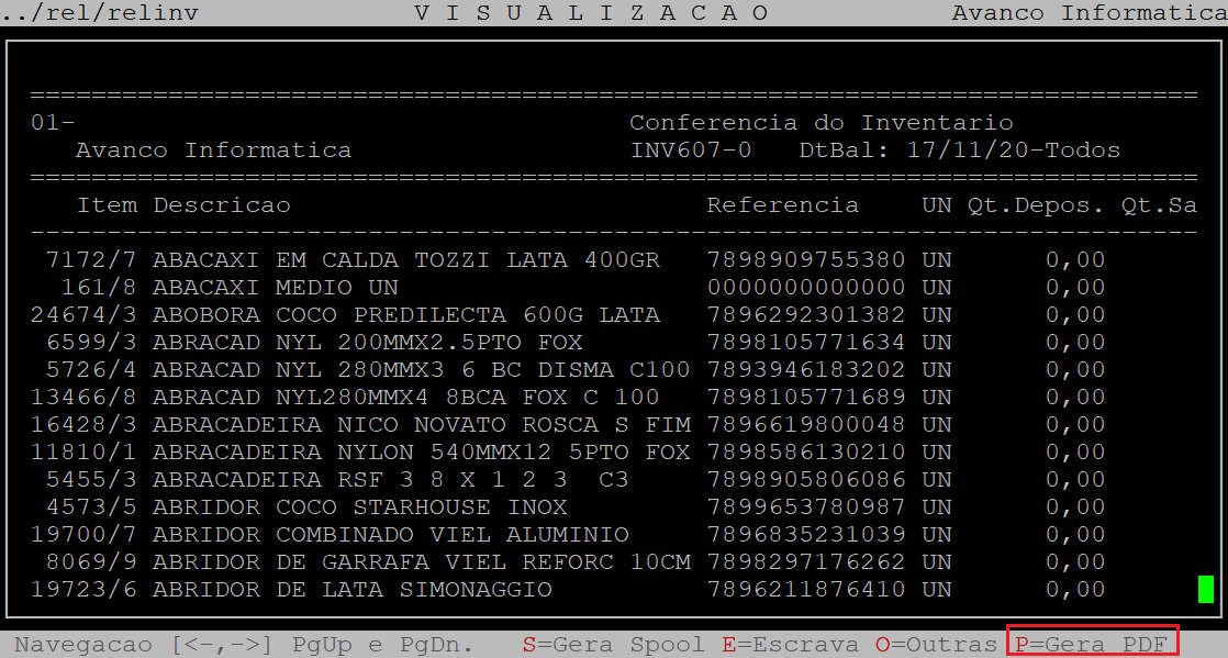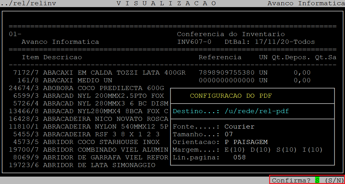 Se desejar visualizar em pdf, em seguida deverá pressionar a tecla P e depois a tecla Enter até confirmar.