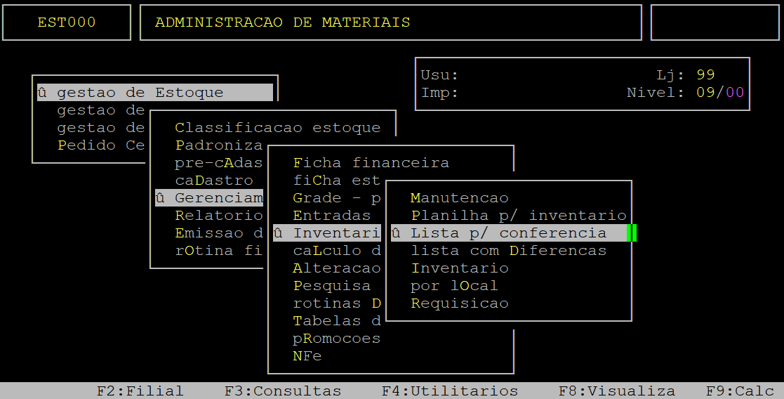 | Localização: | Administracao Materiais / Gestao de Estoque / Gerenciamento de Filial / Inventario / Lista p Conferencia |