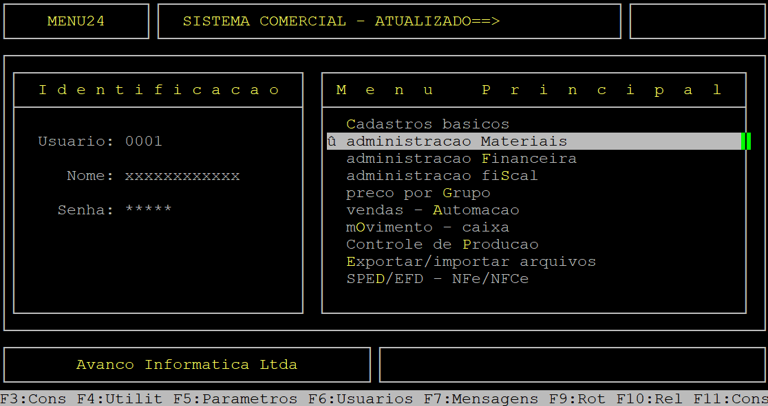 | Acumula Setor: | Informe a letra S para acumular setor no relatório, ou N para não acumular. | |