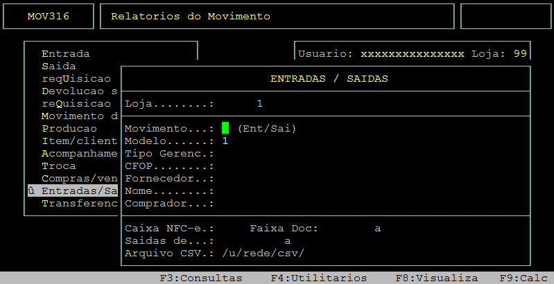 | Localização: | Adm Materiais / Gestao de Estoque / Gerenciamento Filial / Entradas e Saidas / Relatorios / Entradas-saídas |