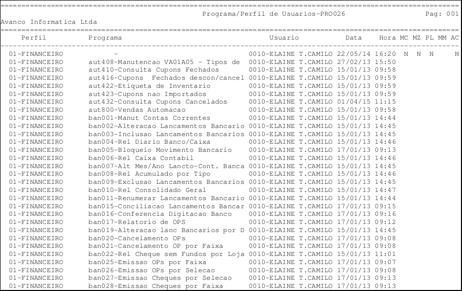 Localização: | F6:Usuarios / Perfil / Programa - Perfil / Relatorio |