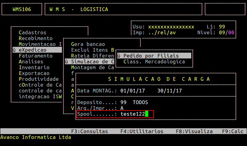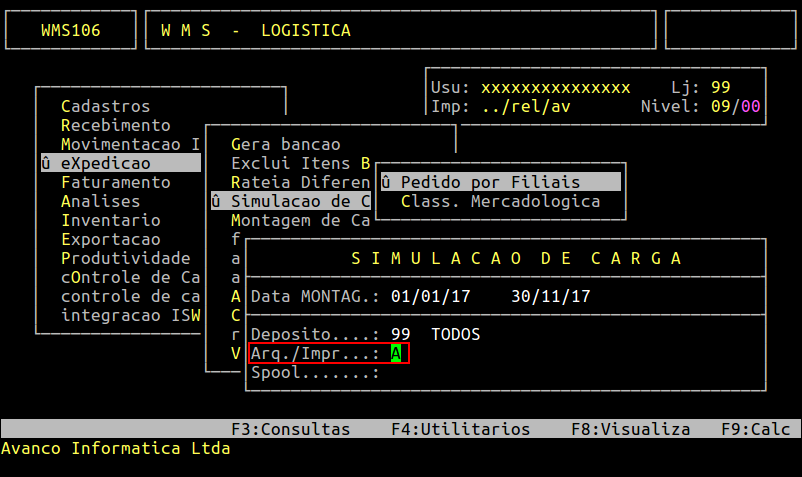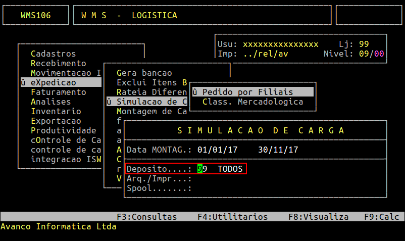 Depósito: | Insira o código do depósito ou digite 99 para todos. |