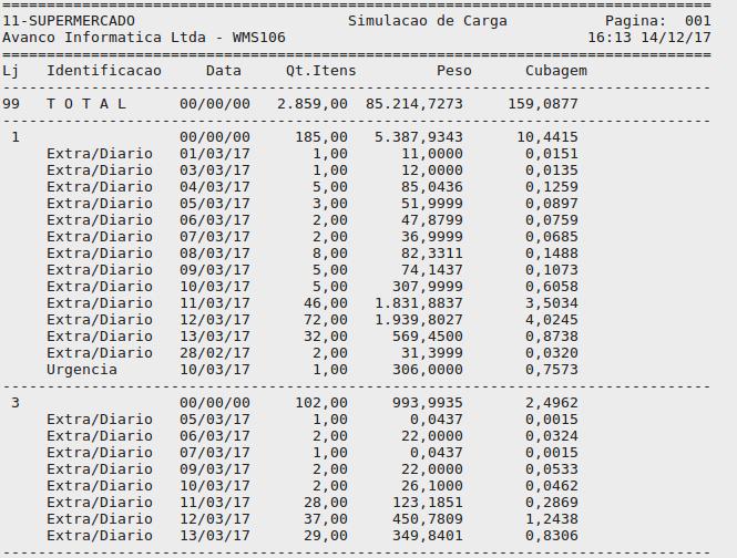 O relatório de simulação de carga permite montar a simulação de carga de determinados depósitos.