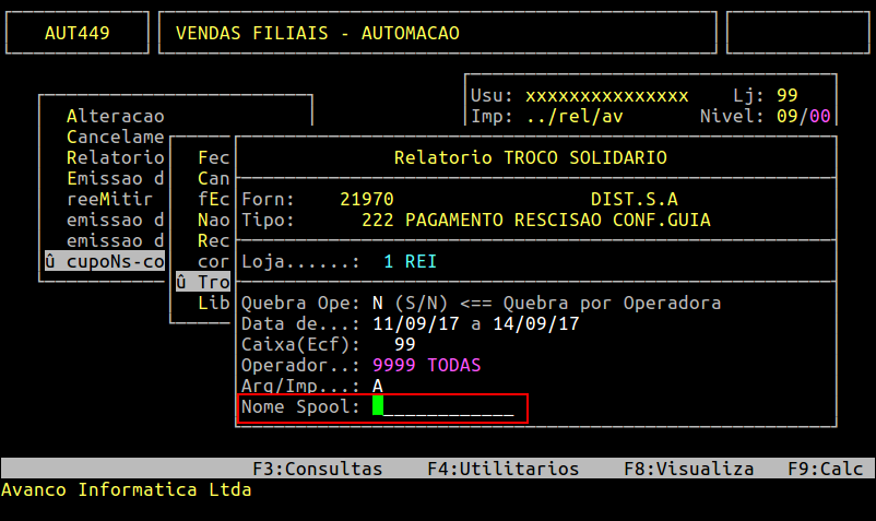 Nome Spool: | Digite o nome do Arquivo que será salvo. |