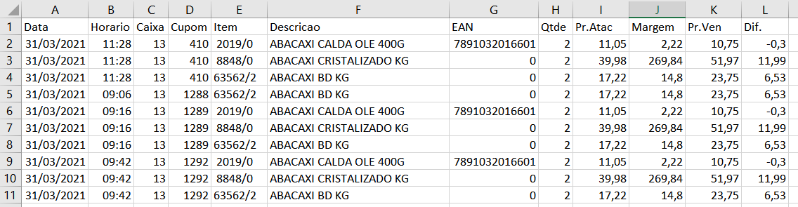 Data: | Refere-se a data em que a venda foi realizada. |