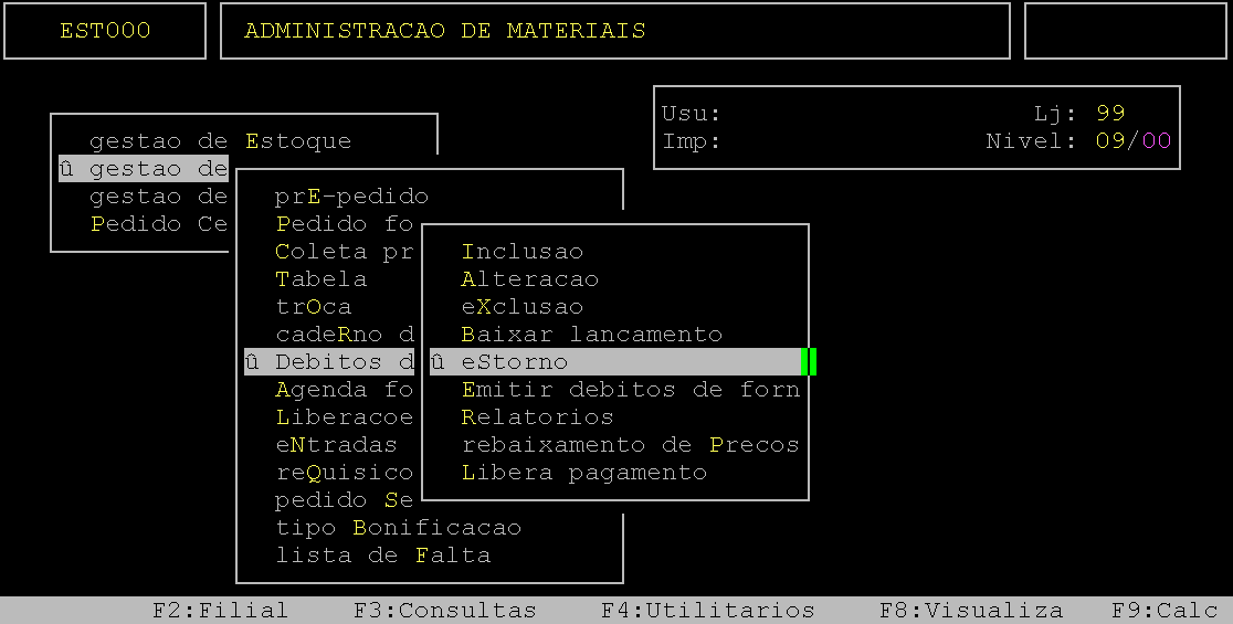 Localização: | Administracao Materiais / Gestao de Compras / Debitos de Fornecedor / Estorno |