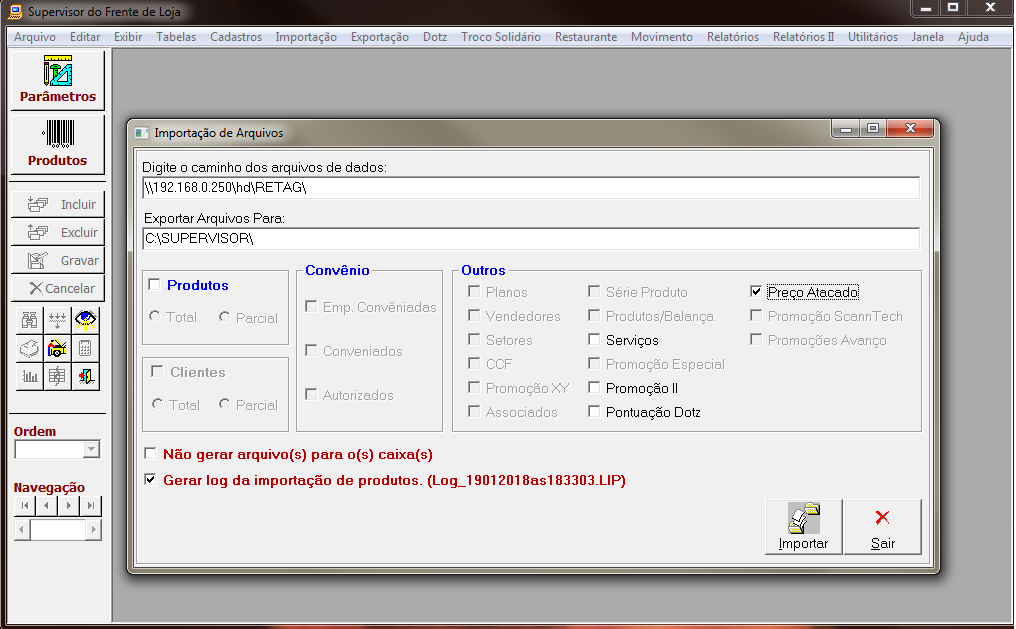 Ao abrir o Supervisor, entre no caminho: Importação / Retaguarda, marque a opção "Preço Atacado" e clique no botão "Importar".