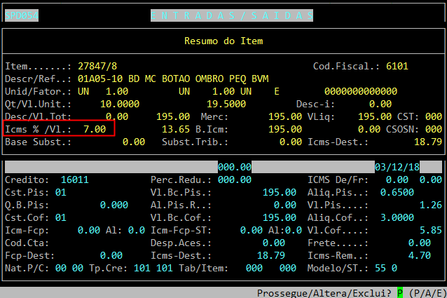 Localização: | Cadastros Basicos / Tabelas / Estado - Tributacao / Emissao da Nota / Manutencao |