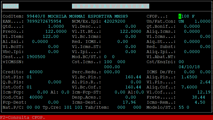 Localização: | Administracao Fiscal / Saida / Manurtencao / Consulta |