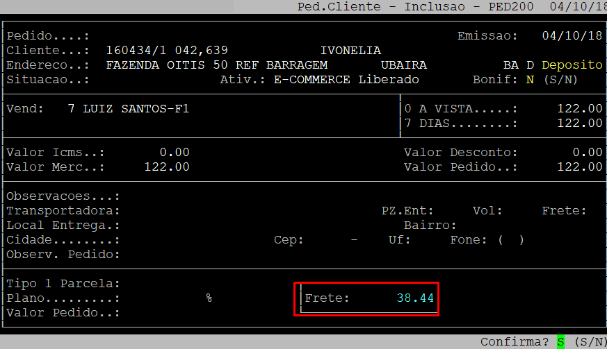 Exemplo de Inclusão de Pedido de Venda - Informando o Frete