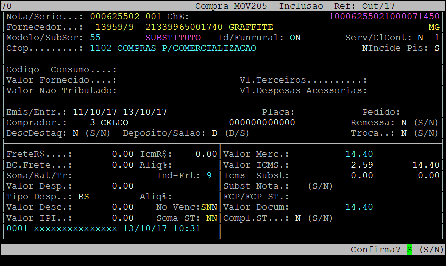 Localização: | Adm de Materiais / Gestão de Estoque / Gerenciamento de Filial / Entradas e Saídas / Movimentação / Entrada / Compra / Mercadoria |