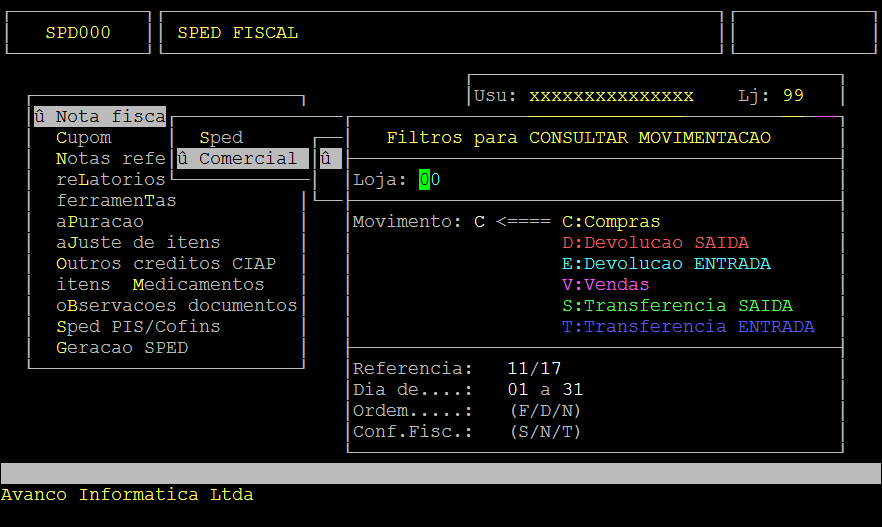 Localização: | SPED -Efd / Nota Fiscal / Comercial / Browser |