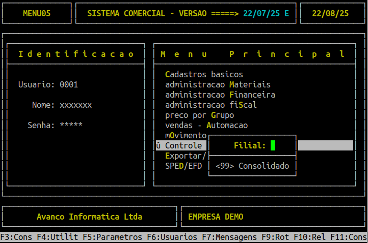 Caso possuir mais de uma loja configurada no cadastro de usuário, o sistema exibirá a janela de Filial, no qual deverá informar o número da loja que deseja gerar a produção individual.
