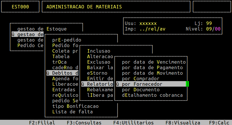 Para gerar o relatório de débitos de fornecedor por fornecedor, acesse a localização citada acima.