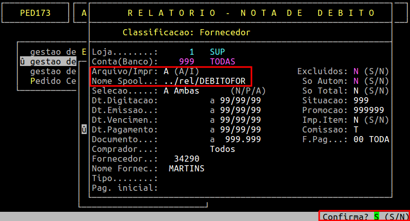 Assim que preencher os campos acima, pressione a tecla Enter ou S para confirmar e gerar o relatório.
