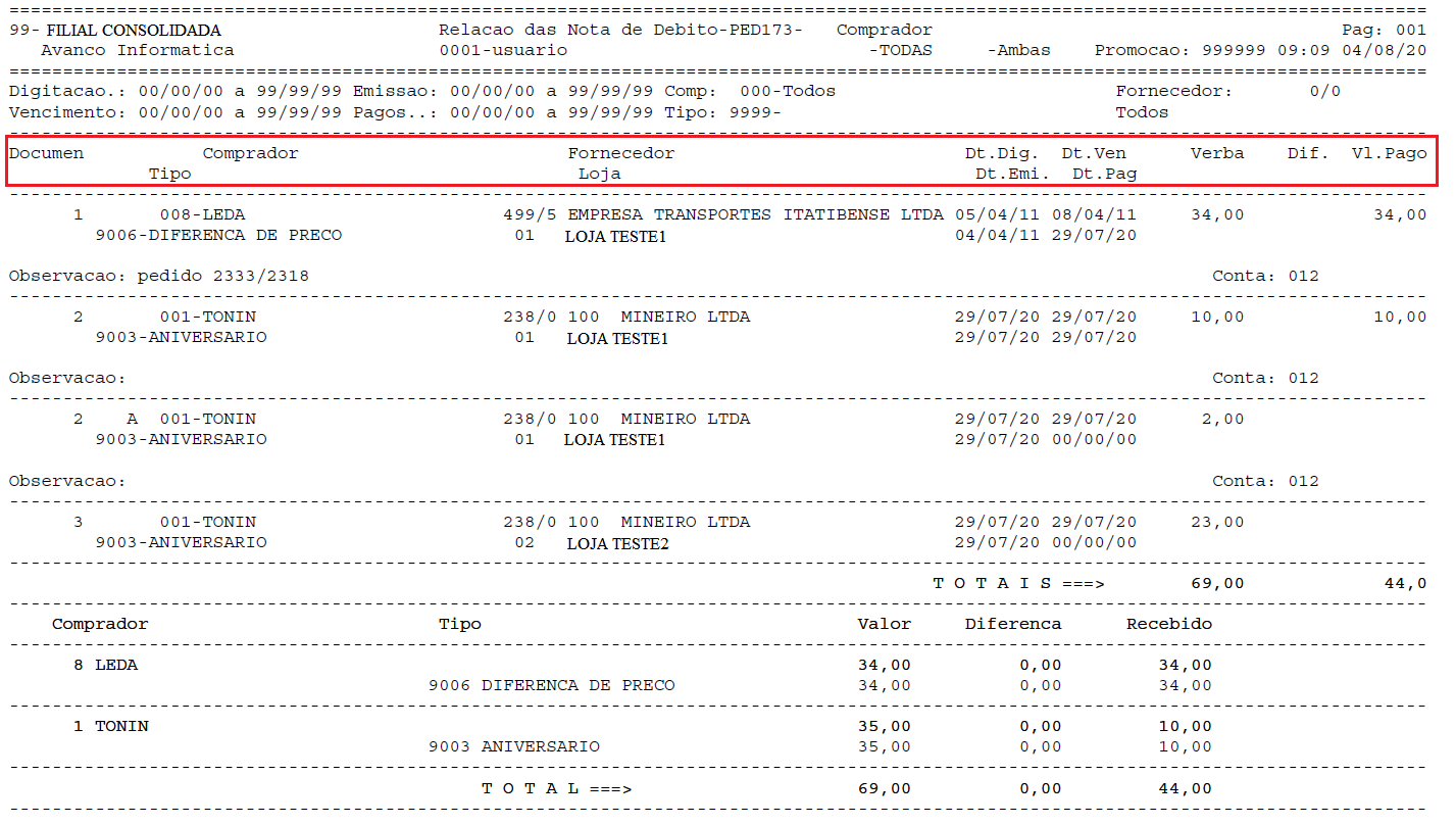 Rotina: | Relatório - Nota de Débito por Comprador |