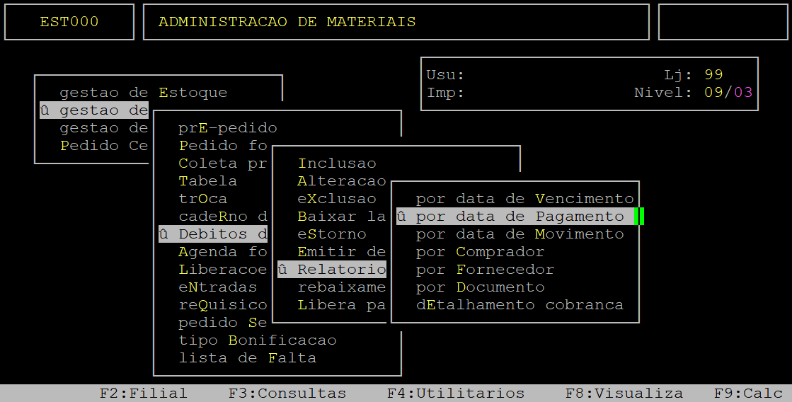 1- Gerando Relatório de Débitos de Fornecedor por Data de Pagamento