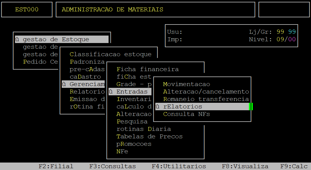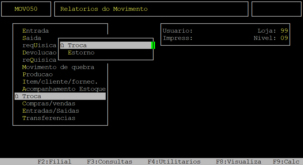 Localização: | Administracao Materiais / Gestao de Estoque / Gerenciamento Filial / Entradas e Saidas / Relatorios / Troca / Troca |