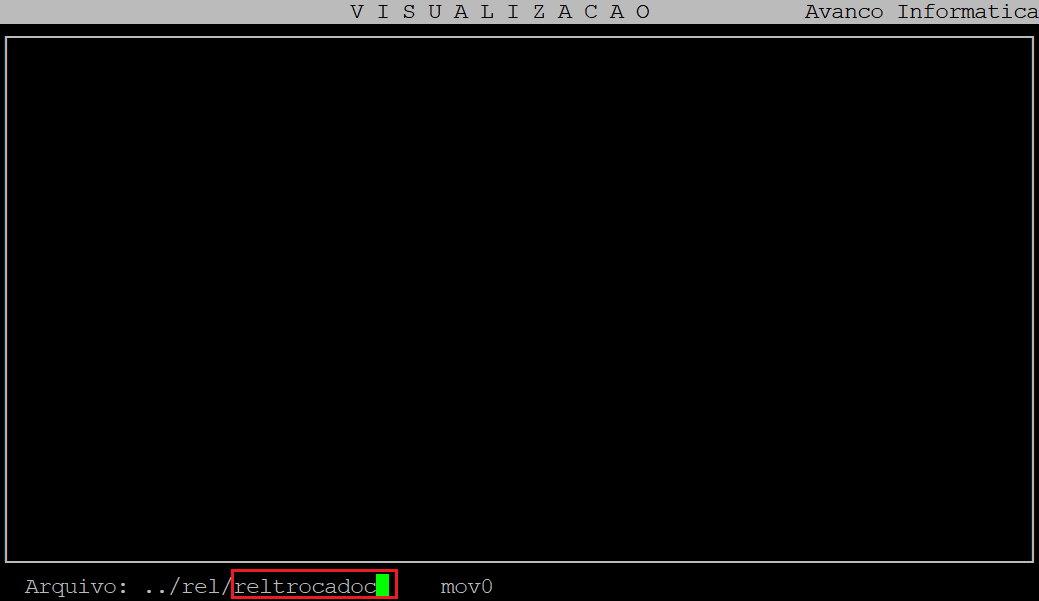 Em seguida, para visualizar o relatório pressione a tecla F8, informe o nome dado ao Spool e, pressione a tecla Enter para visualizá-lo na tela.