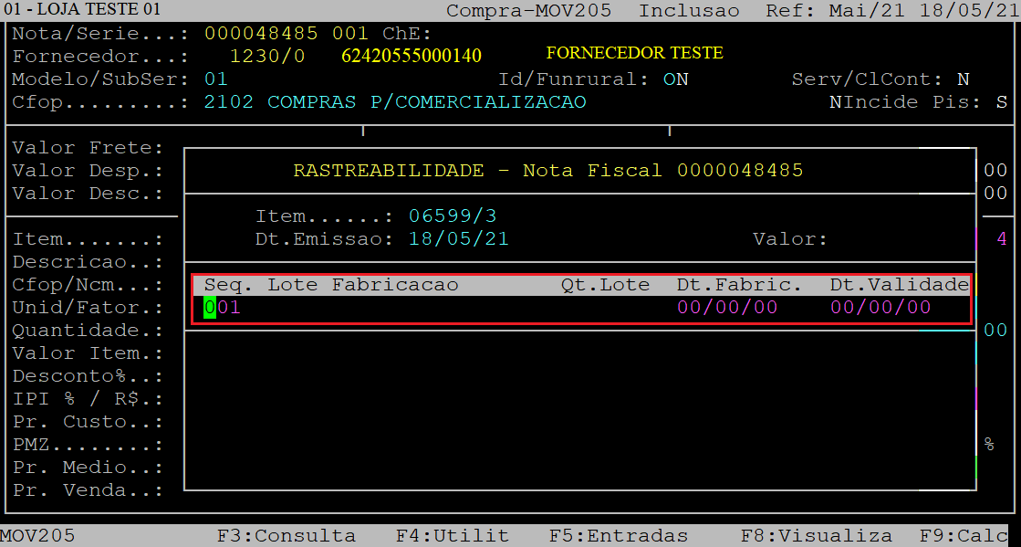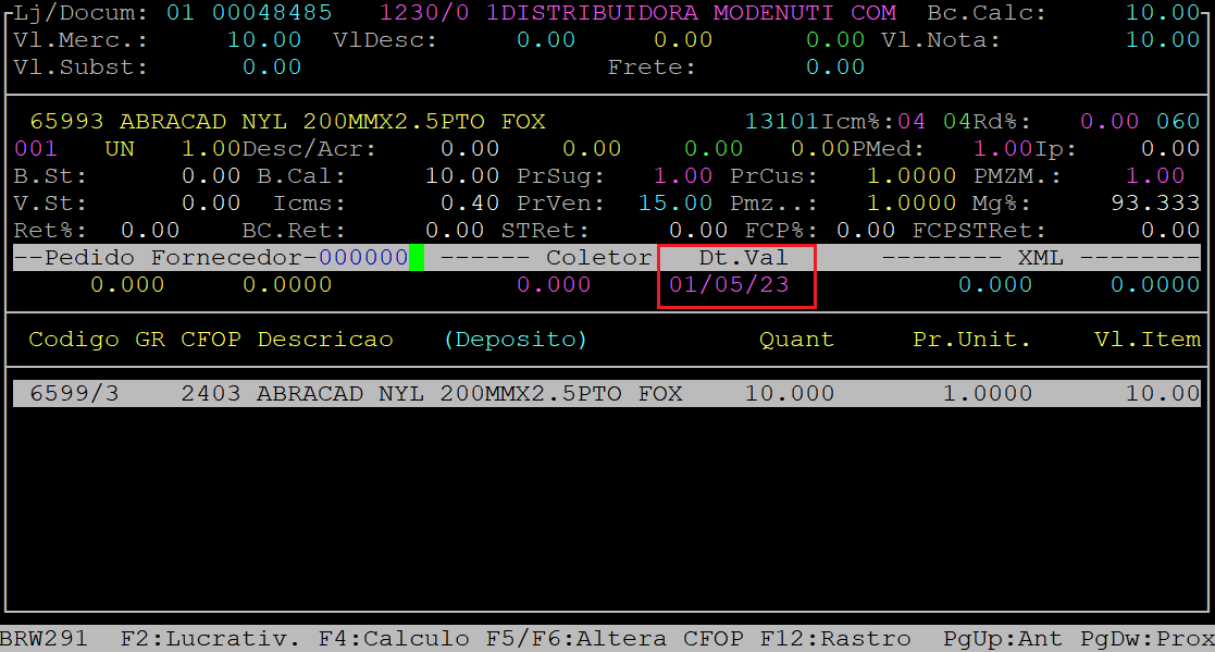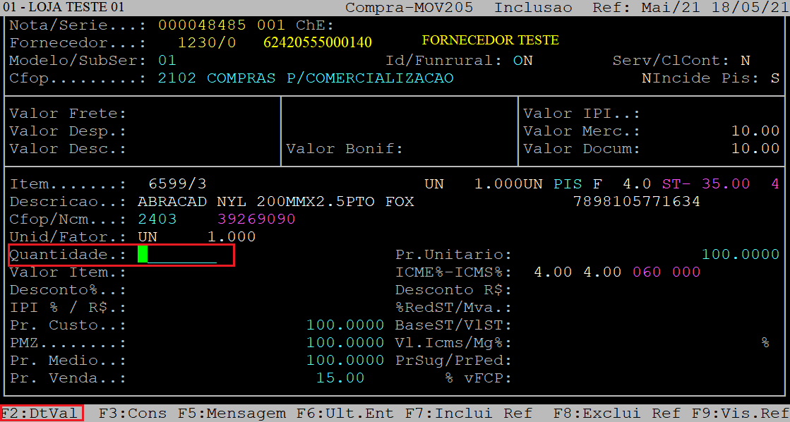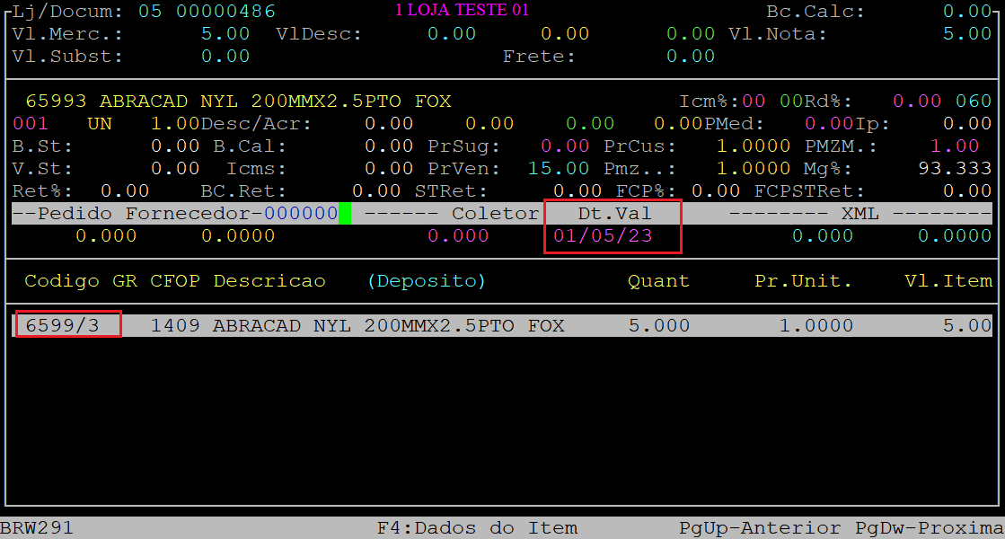 Observe que a data de validade foi gravada automaticamente no campo Dt.Val.
