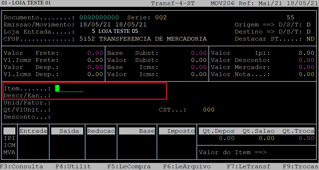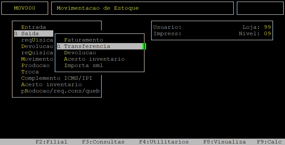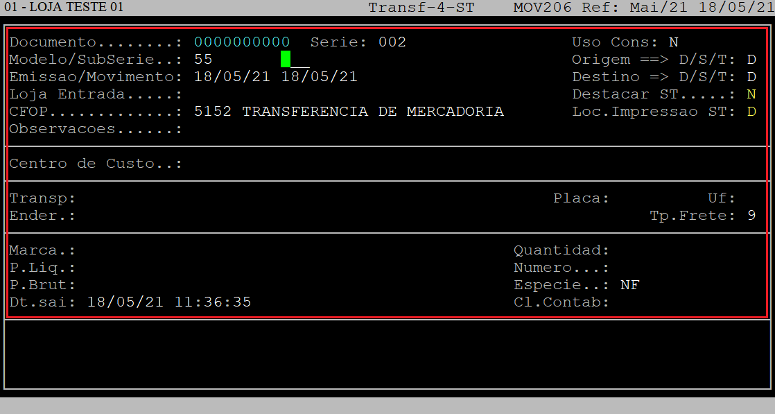 Rotina: | TRANSFERENCIA Saida |