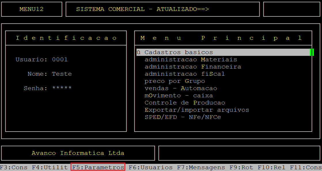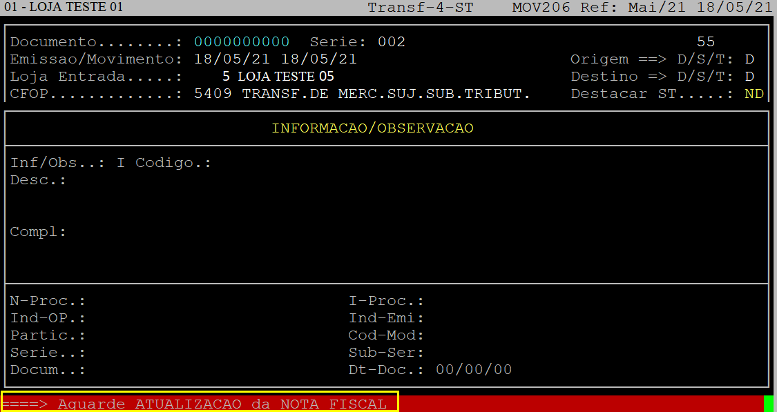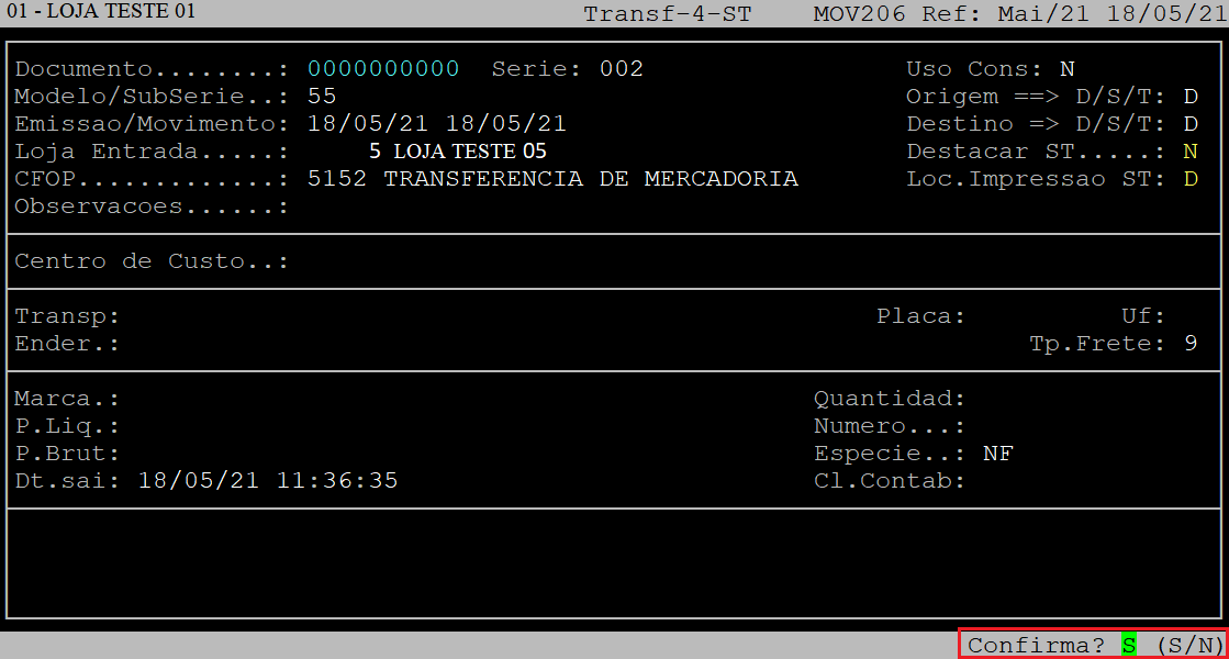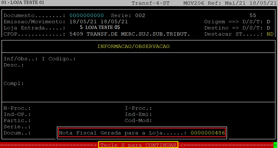 Ao ser exibido o número da nota fiscal, aperte a tecla S para sair da rotina.