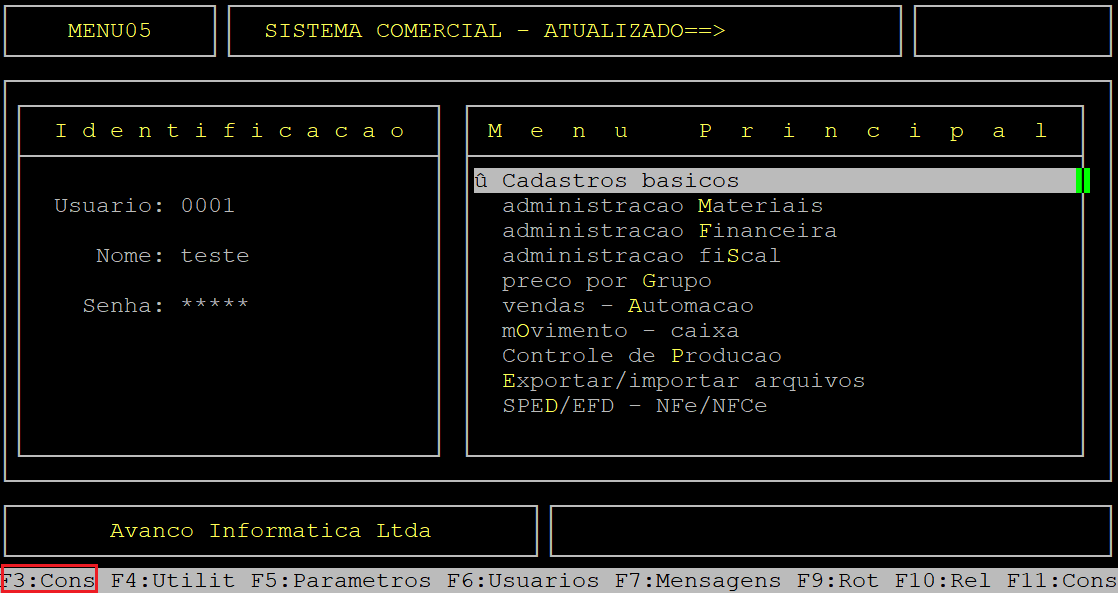 Para sair da tela de consulta, aperte a tecla Esc.
