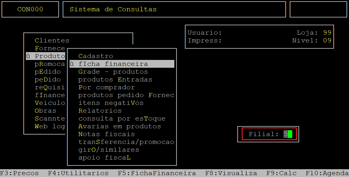 Localização: | F3 / Produtos / Ficha Financeira |