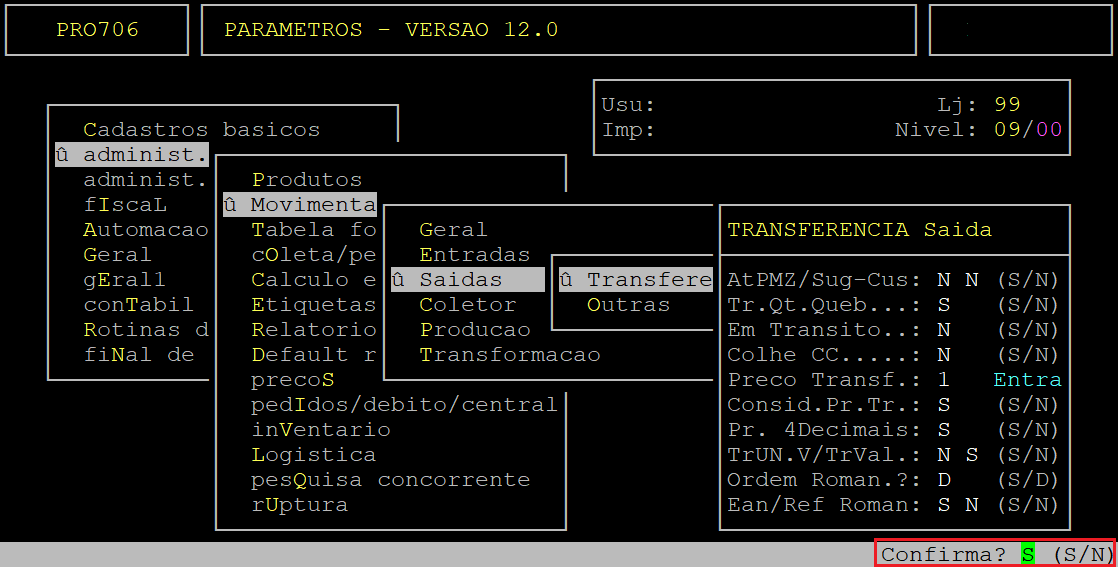 Após preencher os campos citados no quadro acima, será exibida a pergunta " Confirma? ", pressione a tecla Enter ou informe a letra S para confirmar os dados da primeira tela.
