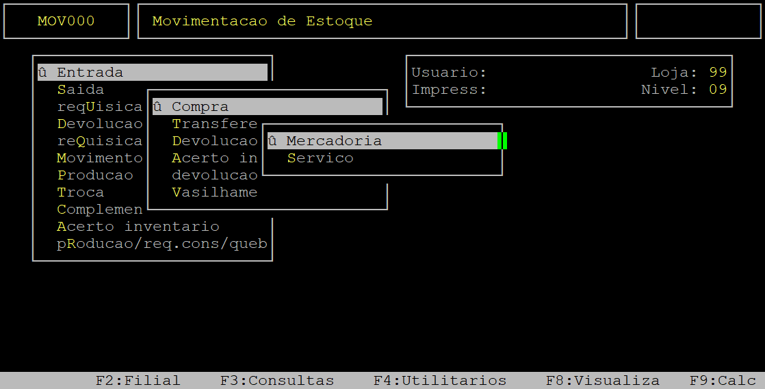 Depois, aperte a tecla F7 para selecionar o tipo de movimento das notas fiscais.
