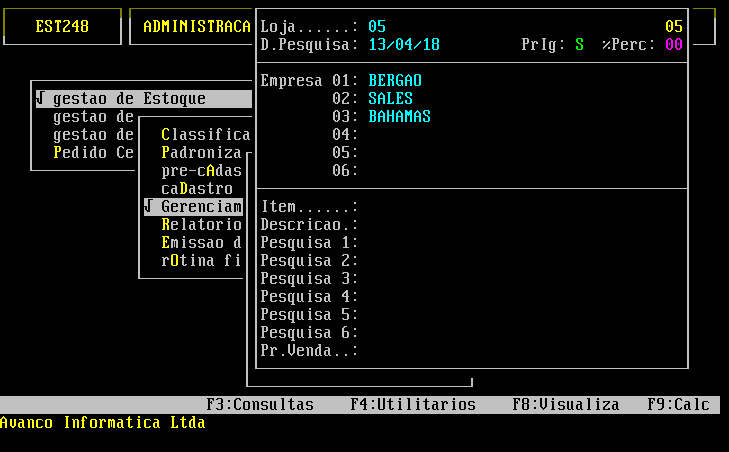 Localização: | Adm Materiais / Gestão de Estoque / Gerenciamento Filial / Pesquisa de Preços / Manutenção / Manutenção |
