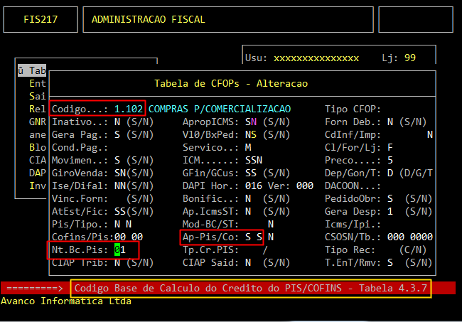 2.2 - Consultando CFOP Gerador do Crédito do PIS/COFINS
