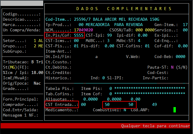 | Observação: Conforme a imagem acima, o item é incidente do PIS/COFINS, com CST de Entrada 50 - Operação com Direito a Crédito. |