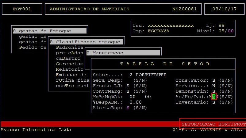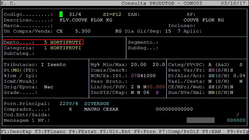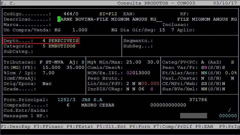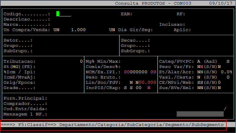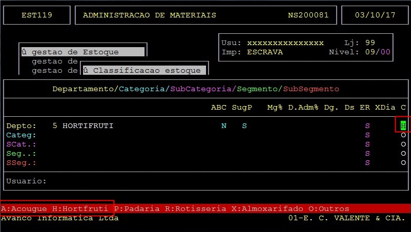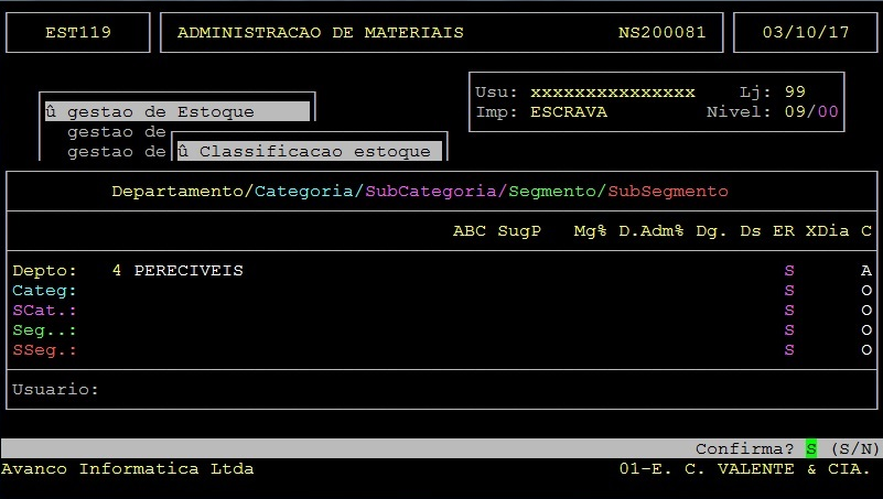 | Rotina: | Departamento/Categoria/SubCategoria/Segmento/SubSegmento |
