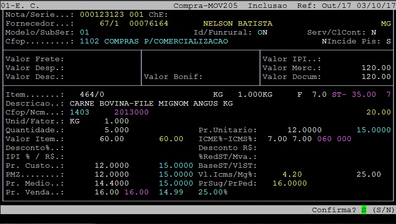 Observação: A rotina de entrada de Nota Fiscal atuailza o Custo e o PMZ do produto, porém, os itens de Horti-Frutti e Açougue podem ser configurados para que o Custo e o PMZ não sejam alterados.